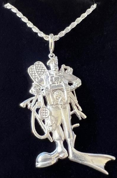 pin or Pendant SILVER SCUBA W/CZ PIN or Pendent / No Chain 20" 1.85 SILVER ROPE CHAIN 20" STERLING SILVER 2.5MM