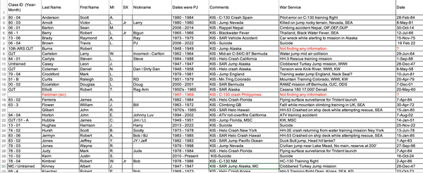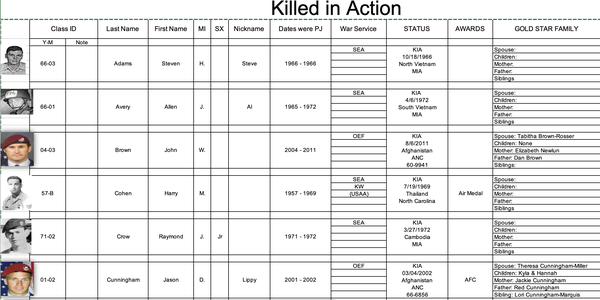 We will say the names of all those KIA, help us make sure we have everyone noted in our master files. KIA/KIS/KID (Service and