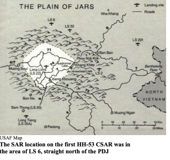 aircraft, and although likely rendered unconscious in the ejection, his parachute landed him on a rocky limestone karst ridge adjacent to the target.